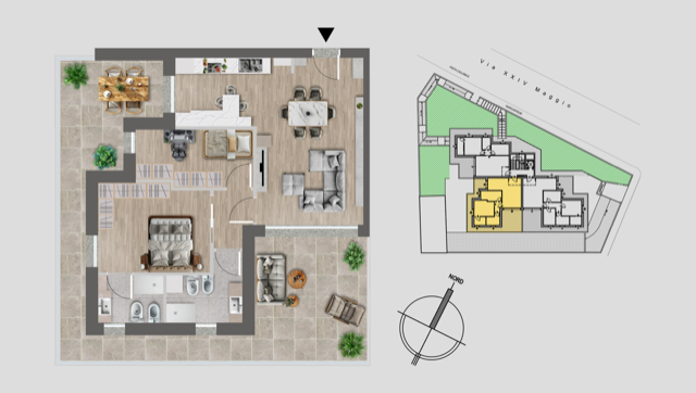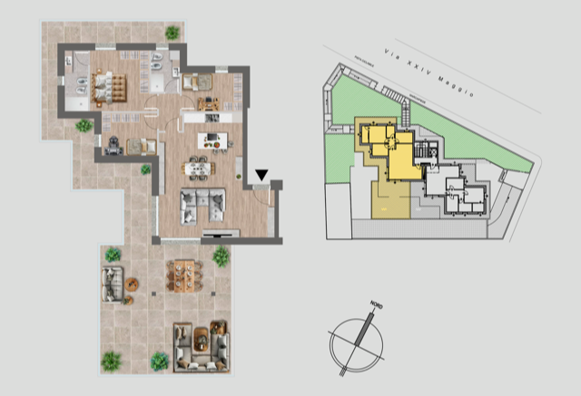 La proprietà in Via 24 Maggio offre una posizione di eccellenza, massimizzando sia la tranquillità che la mobilità.
